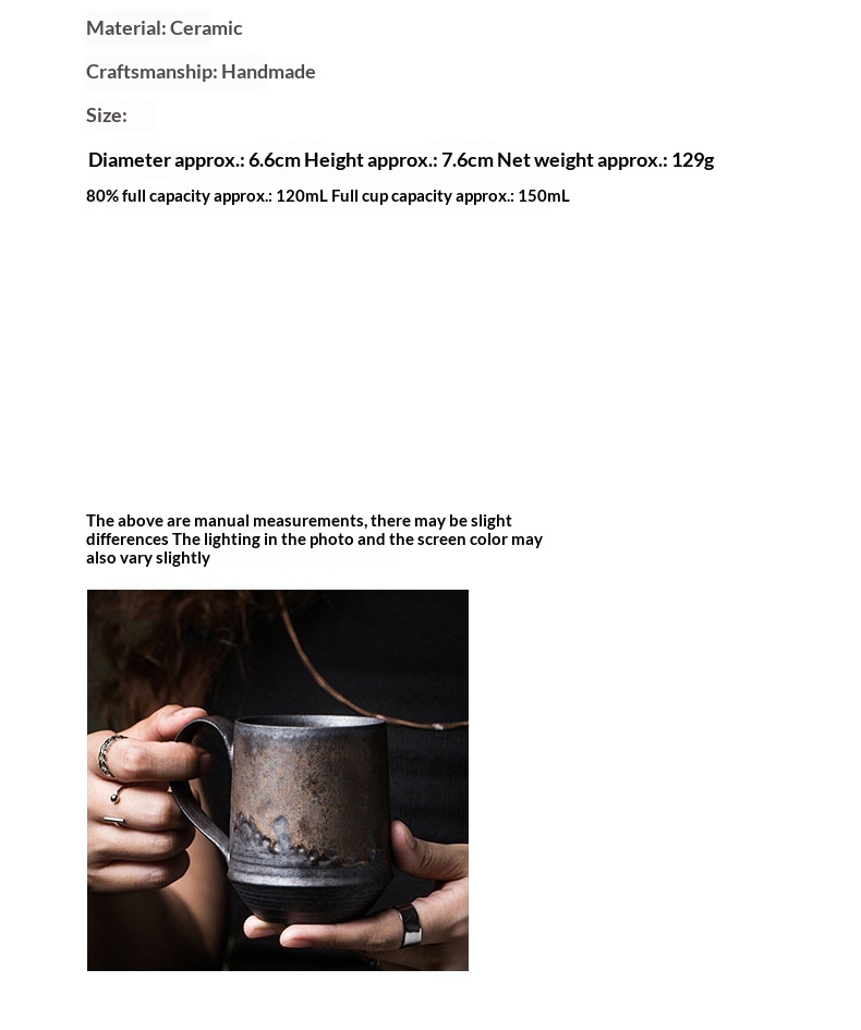 Dimensions (Height, Mouth Diameter): 6.6 * 7.6 cm